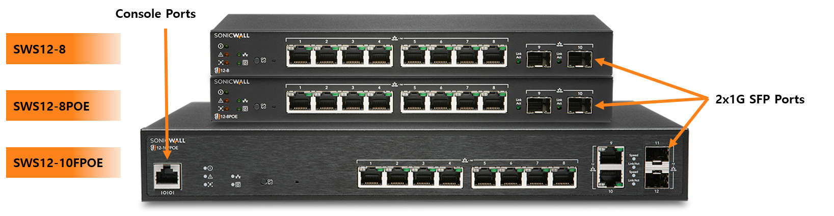 에너지 효율 설계SonicWall 스위치는 에너지 효율적인 설계로 소형 폼 팩터로 제공됩니다. |