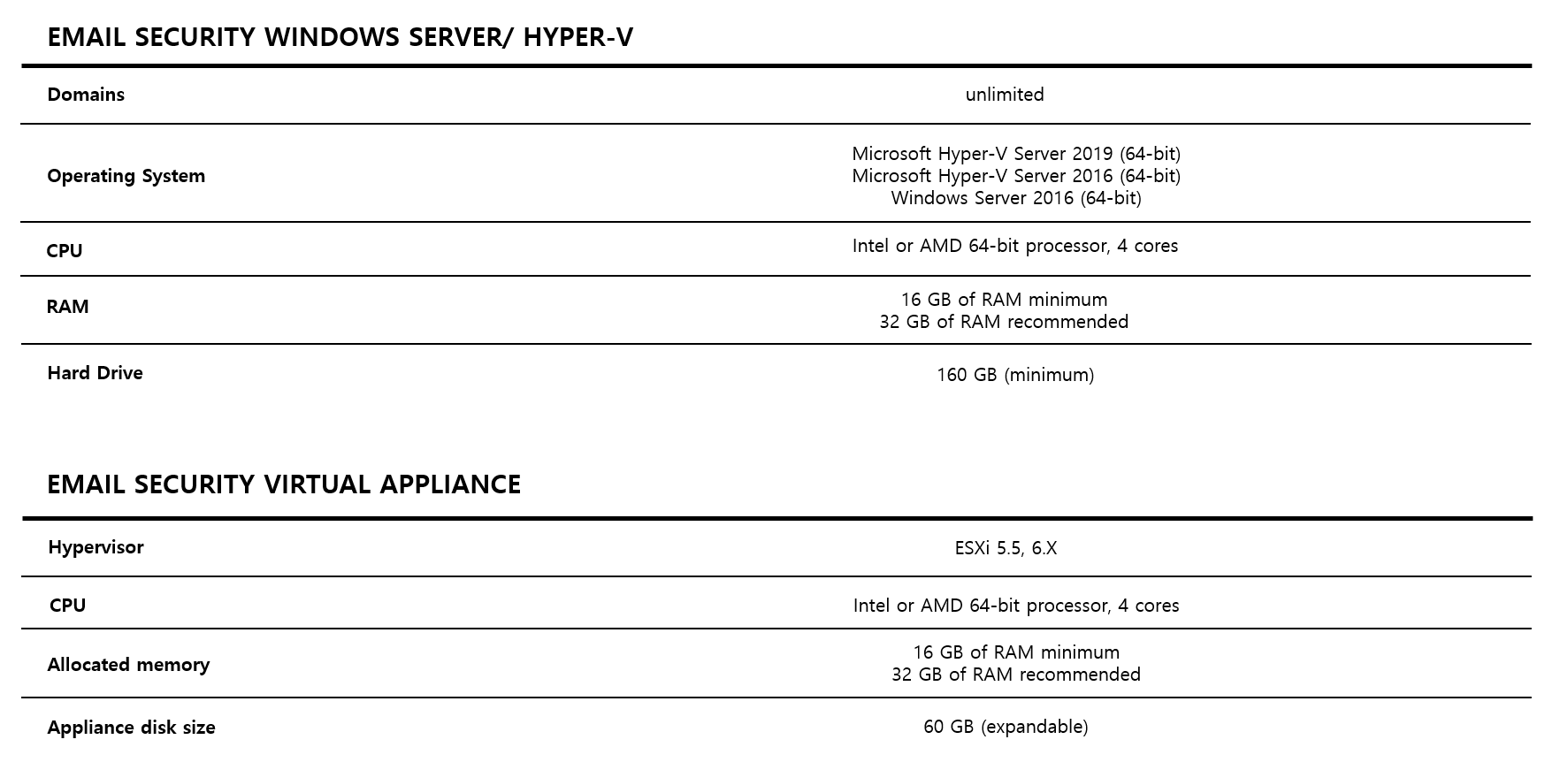 Email Security Appliances 모델 및 사양